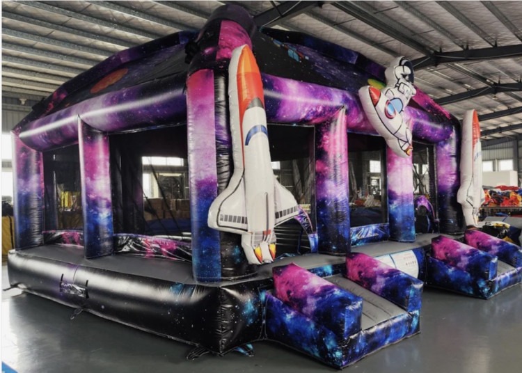 - OCCUPANCY: A maximum of 5-6 kids of equal size at one time for bounce houses, and 1 person at a time for slides is what most inflatable manufacturers recommend.